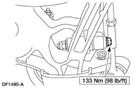 NOTE: The toe link bolt and nuts are of a torque prevailing design. A new bolt and new nuts must be installed.